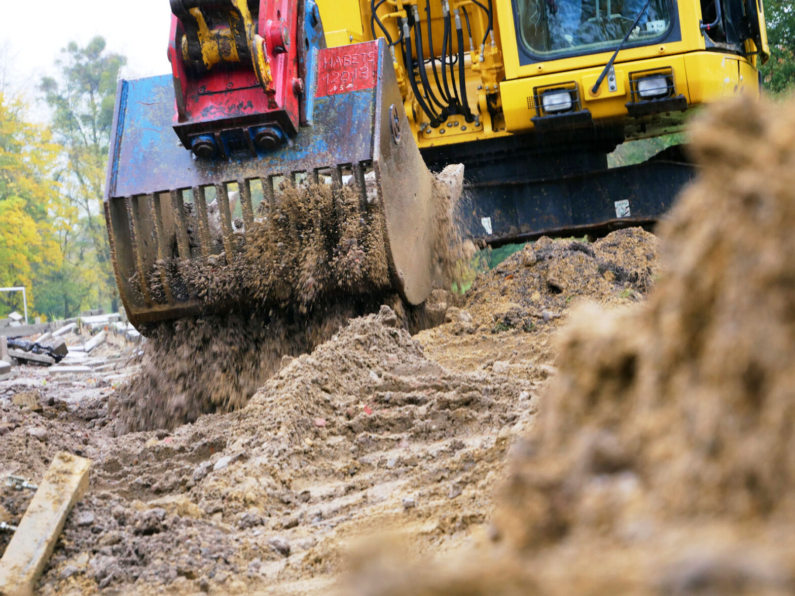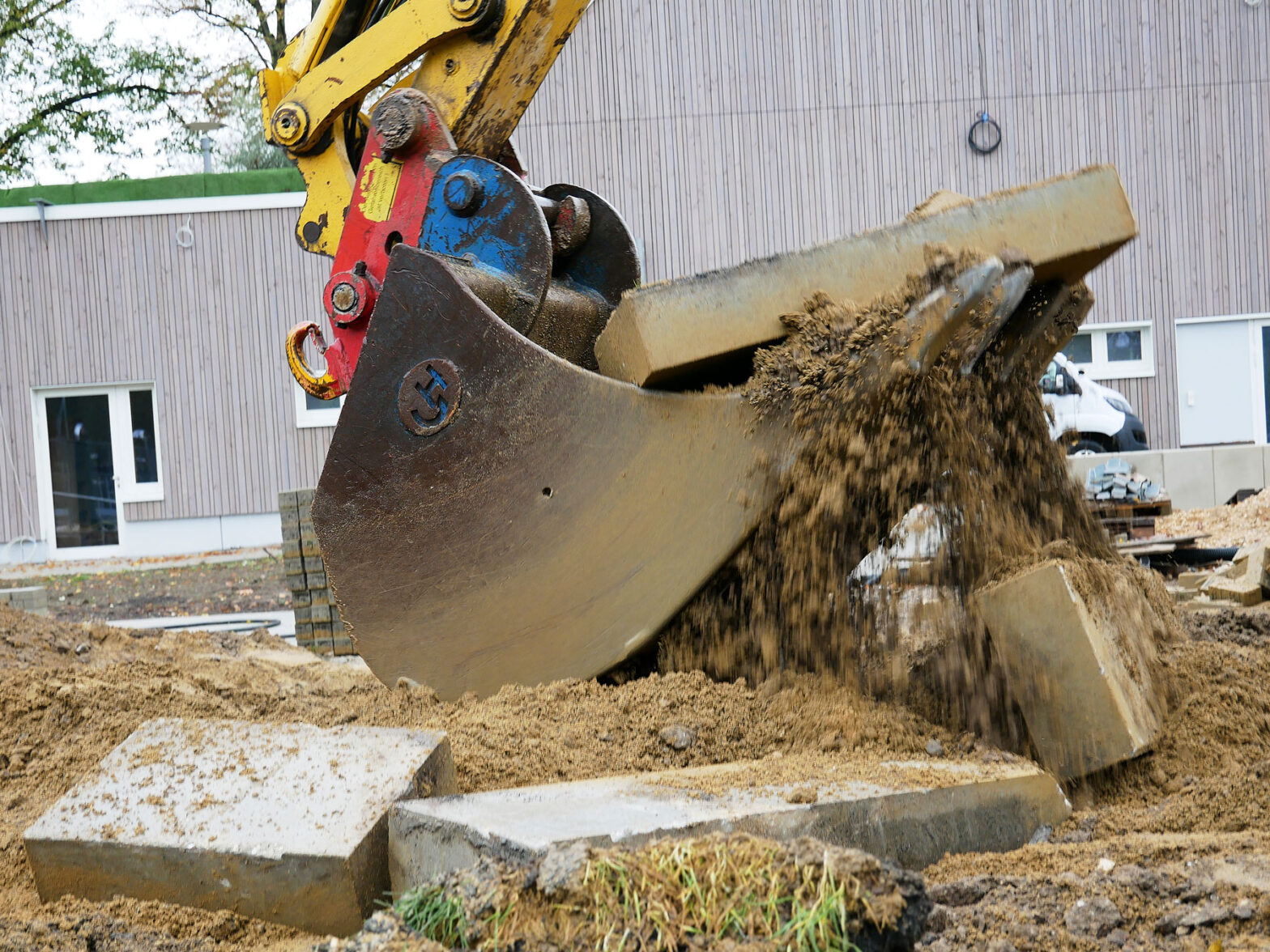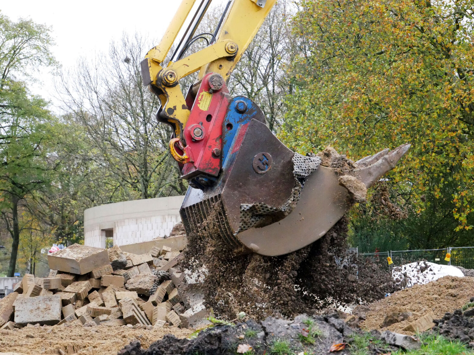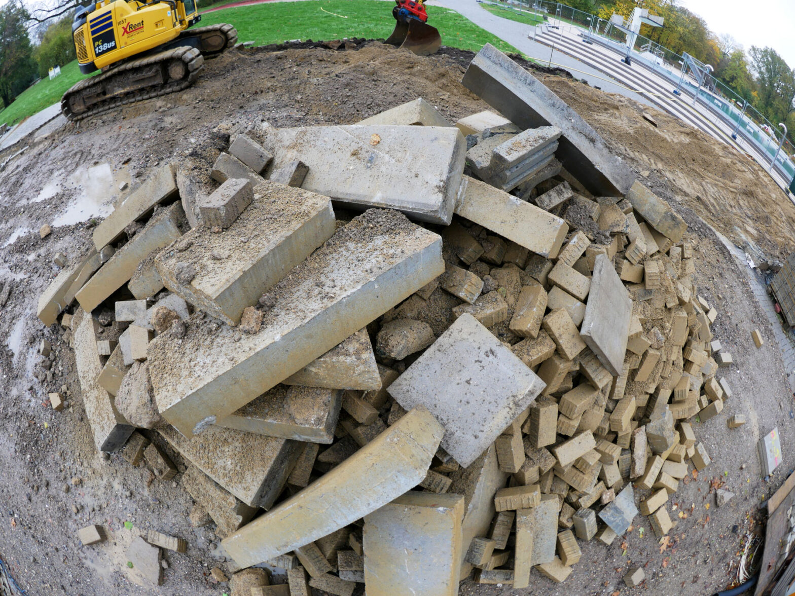 Der Gebäudeneubau am Aachener Freibad geht dem Ende entgegen. Somit hat die Interimslösung mit den Containern nun ausgedient. Nachdem die Stadt Aachen die Sondercontainer abbauen ließ, kümmern wir uns jetzt um den Rückbau der Pflasterflächen und die Erdarbeiten.