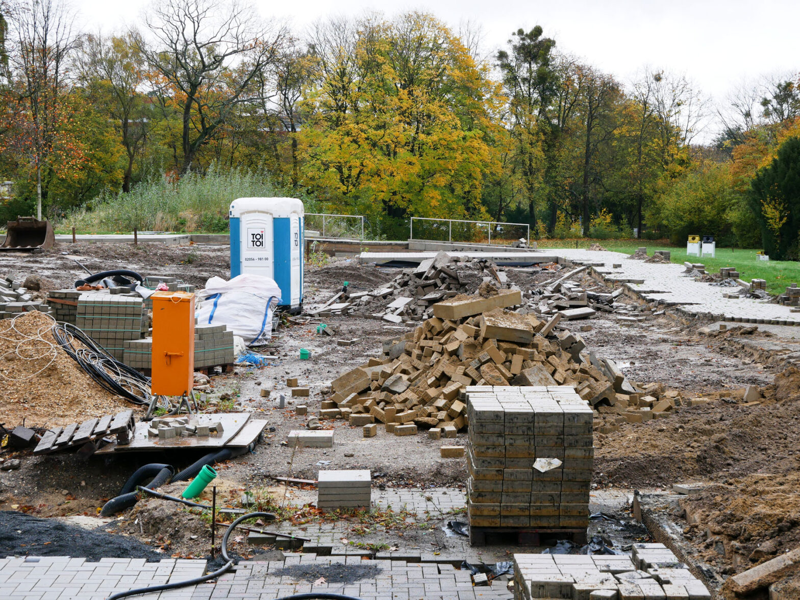 Dabei werden 350 m² Pflaster und 1.000 m³ Unterbaumaterial mit einem Gewicht von 2.000 t abgetragen. Anschließend wird die Fläche mit Mutterboden verfüllt. Zur nächsten Freibadsaison entsteht dort dann eine Liegewiese für die Badegäste.