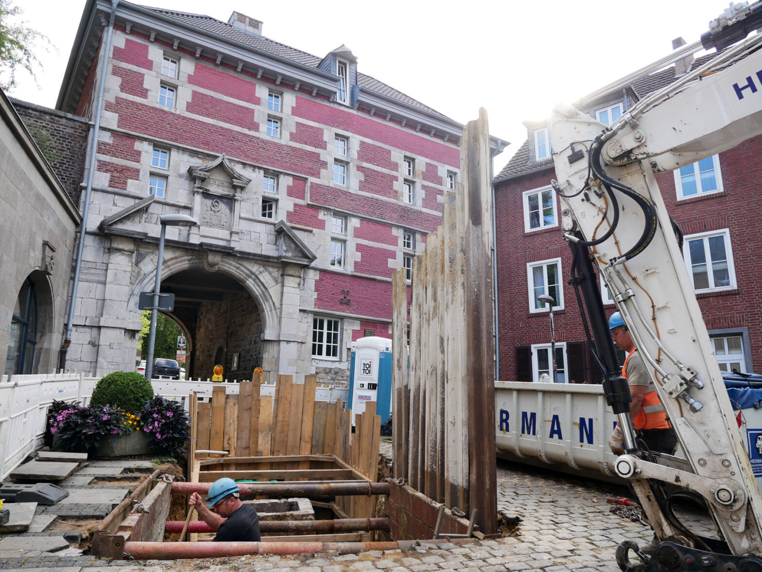 Am 1644 erbauten Abteitor in Aachen-Burtscheid stellten wir einen Schachtabbruch mit Erneuerung sowie die Belüftung des Hauptkanals her.