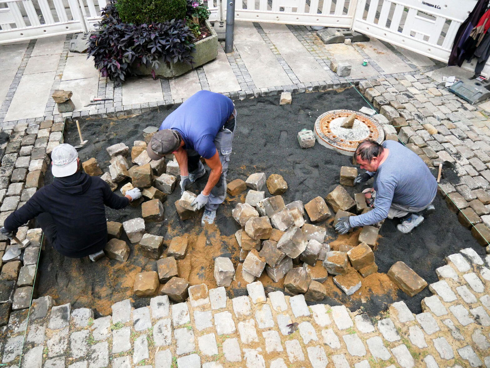 Für uns als Burtscheider Unternehmen ist es natürlich Ehrensache, dass die Arbeiten auf dem Platz mit dem alten Kopfsteinpflaster pünktlich zum letzten After-Work-Markt des Jahres am 16. Oktober fristgerecht abgeschlossen sind.